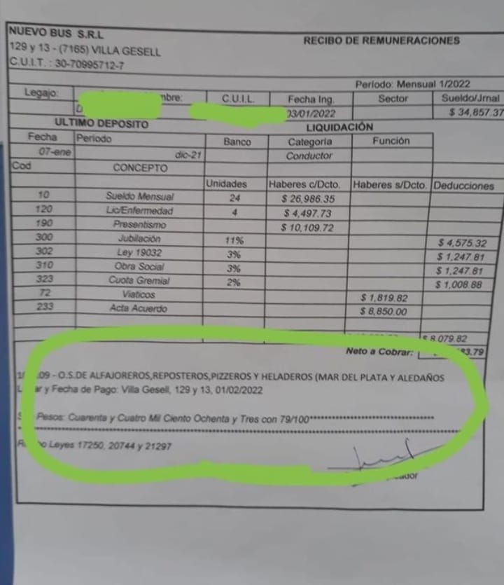 A todo esto se sumó que tomó estado público un recibo de sueldo publicado por el periodista Leonardo Lucero, en donde se deja en evidencia la falta de cumplimiento con el Convenio Colectivo de UTA, y el aporte a un gremio de pasteleros.