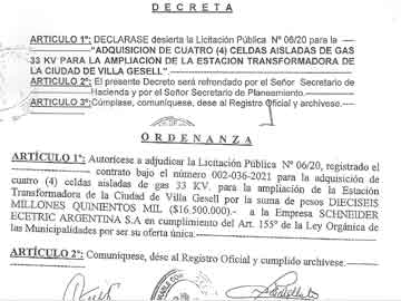 El Decreto y la Ordenanza: convalidaron una licitacion desiertaUn capítulo más a la zaga de la polemica obra de repotenciación electrica ha sumado el Concejo Deliberante de Villa Gesell, que el 8 de febrero, sobre tablas y con el voto de la mayoria habia votado aprobar una licitacion que el Intendente Barrera habia declarado desierta.