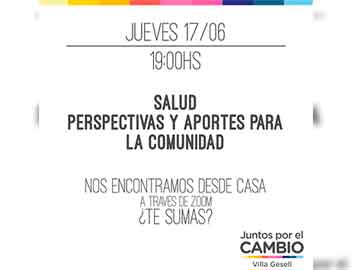 Juntos por el Cambio encara un debate que Gesell se debeEste jueves 17 de junio desde las 19.00 Juntos por el Cambio Villa Gesell realizará una charla via plataforma zoom para debatir la problemática de la salud en Villa Gesell, y además analizar los aportes a traves de diversos proyectos que el Bloque de Concejales ha aportado a l...